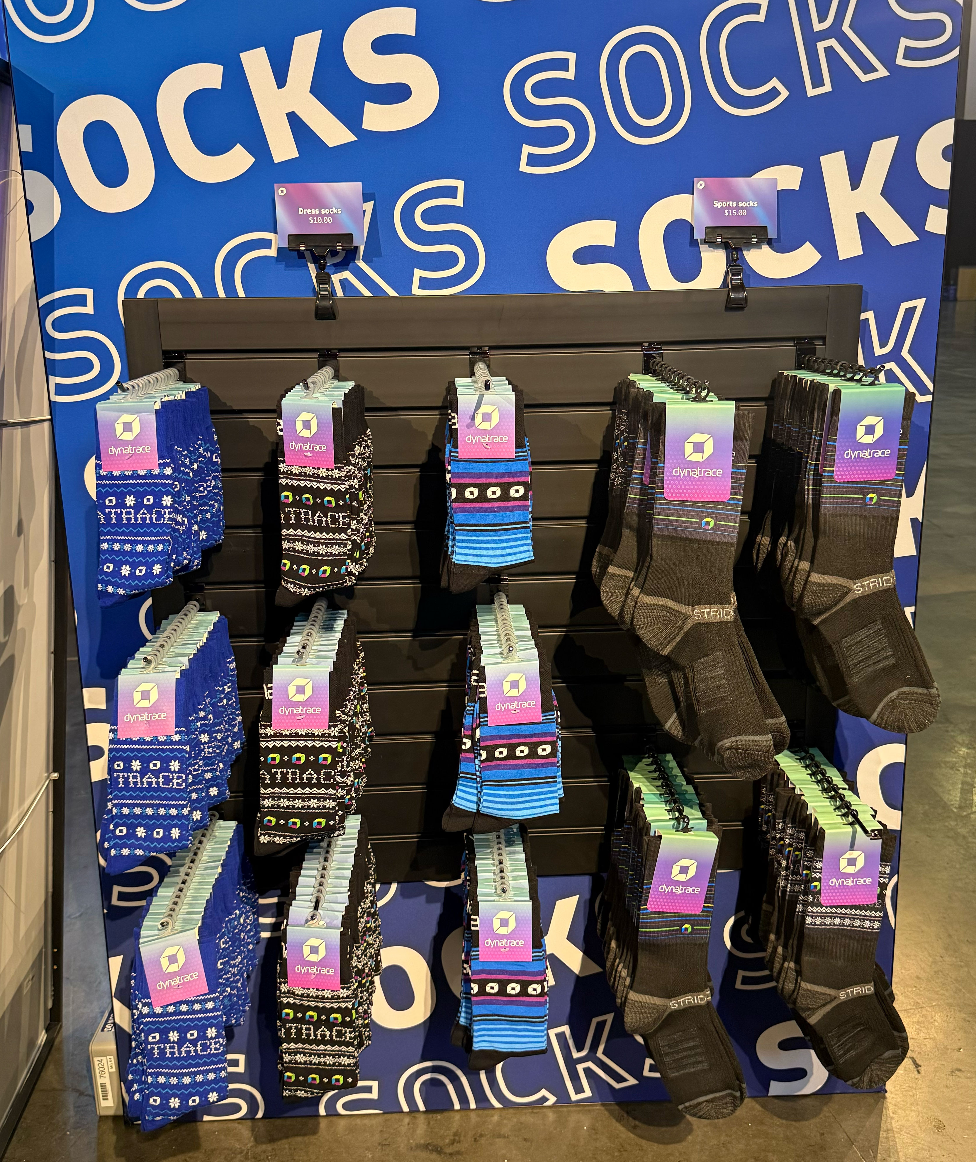 Custom merchandise designed for Dynatrace’s Perform 2026 tentpole event, inspired by an après-ski, winter-in-Vegas theme. Delivered a cohesive set of branded pieces including scarves, beanies, ski socks, stickers, and more.