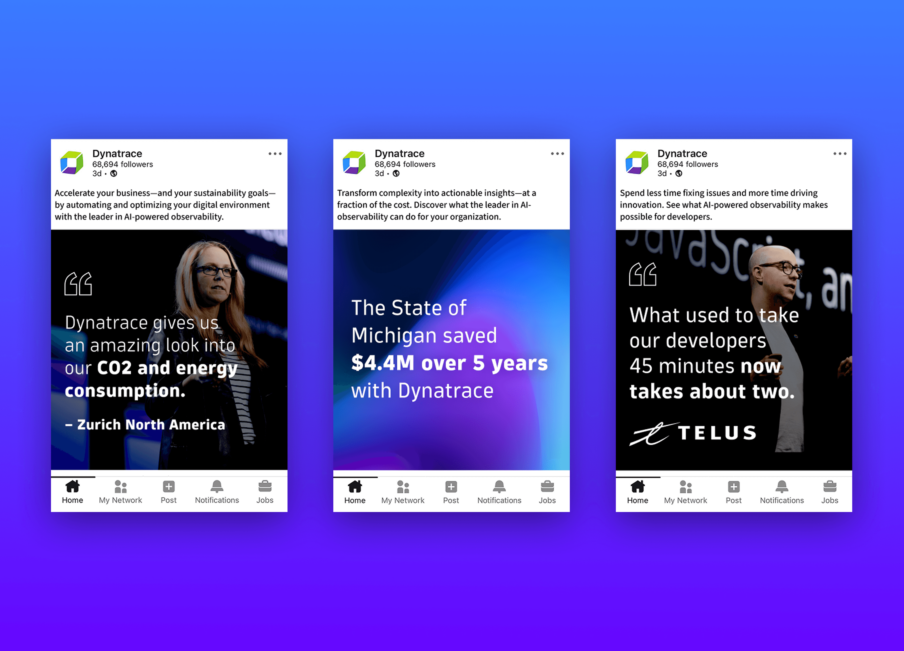 Motion and web design across Dynatrace’s “Understand your business like never before” campaign.